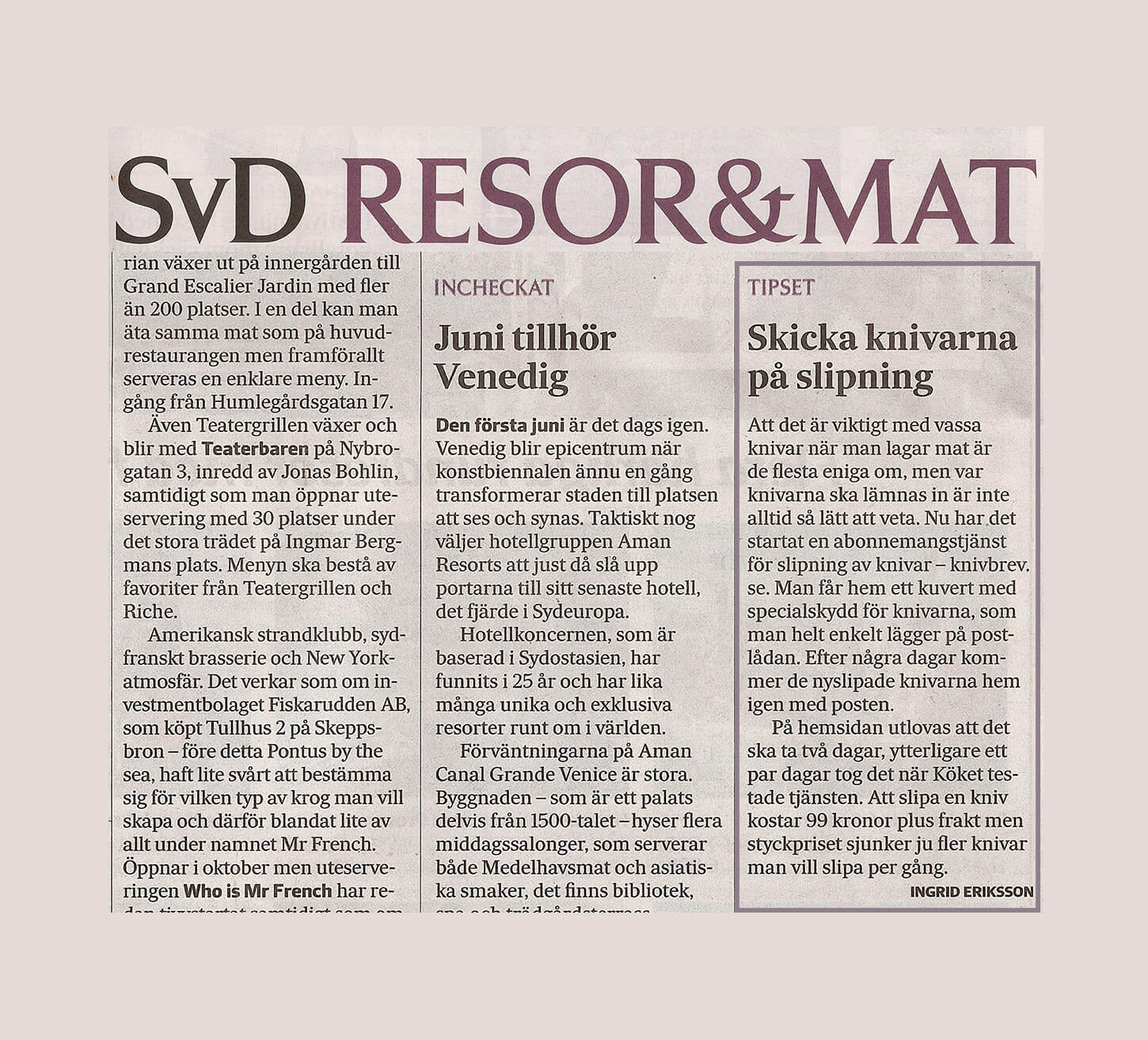 Alltommat_1Tidningen Allt om mat tipsar om Knivbrev